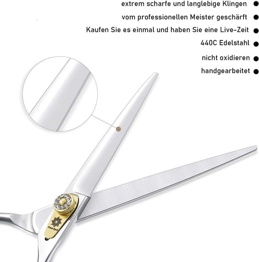 Professional Dog Grooming Straight, Curved, Thinning/Blending/Chunking Scissors Kit, JP-440C Stainless Steel Pet Cat Hair Cutting/Trimming Shears (7 Inch-Straight Scissors)