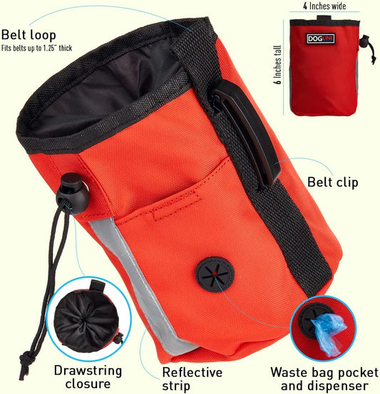 Dog Treat Pouch: Puppy Training Bag, Pet Kibbles and Snacks Holder, Litter Waste Bags Dispenser with Adjustable Drawstring Closure, Large Capacity with Mesh Pocket, Strong Nylon Material